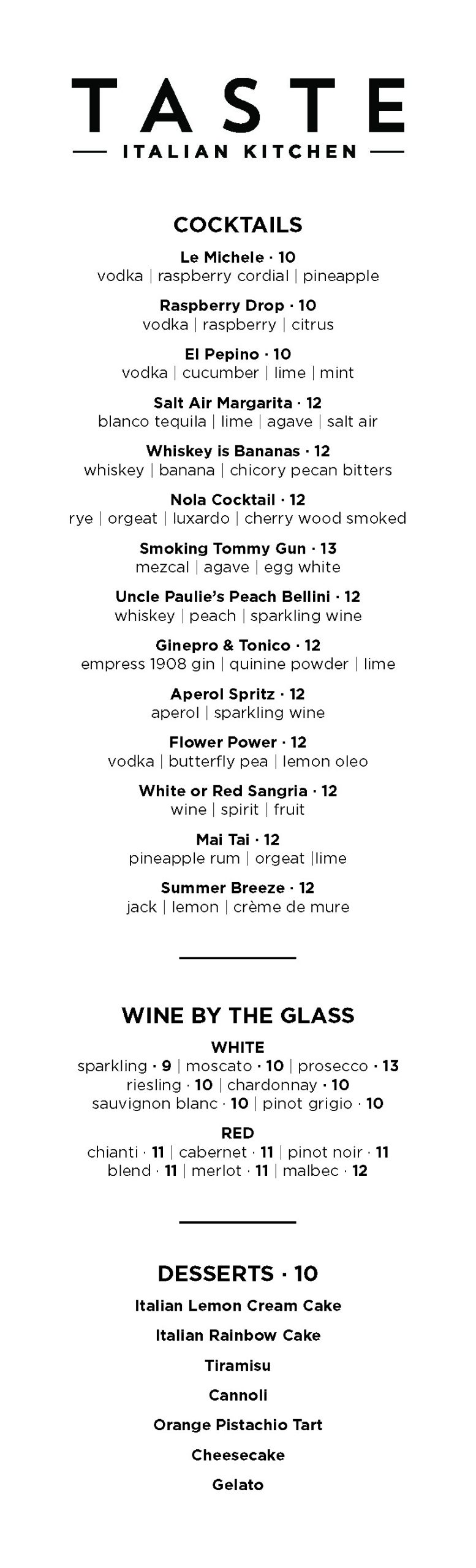 Cocktails, Wine, & Desserts